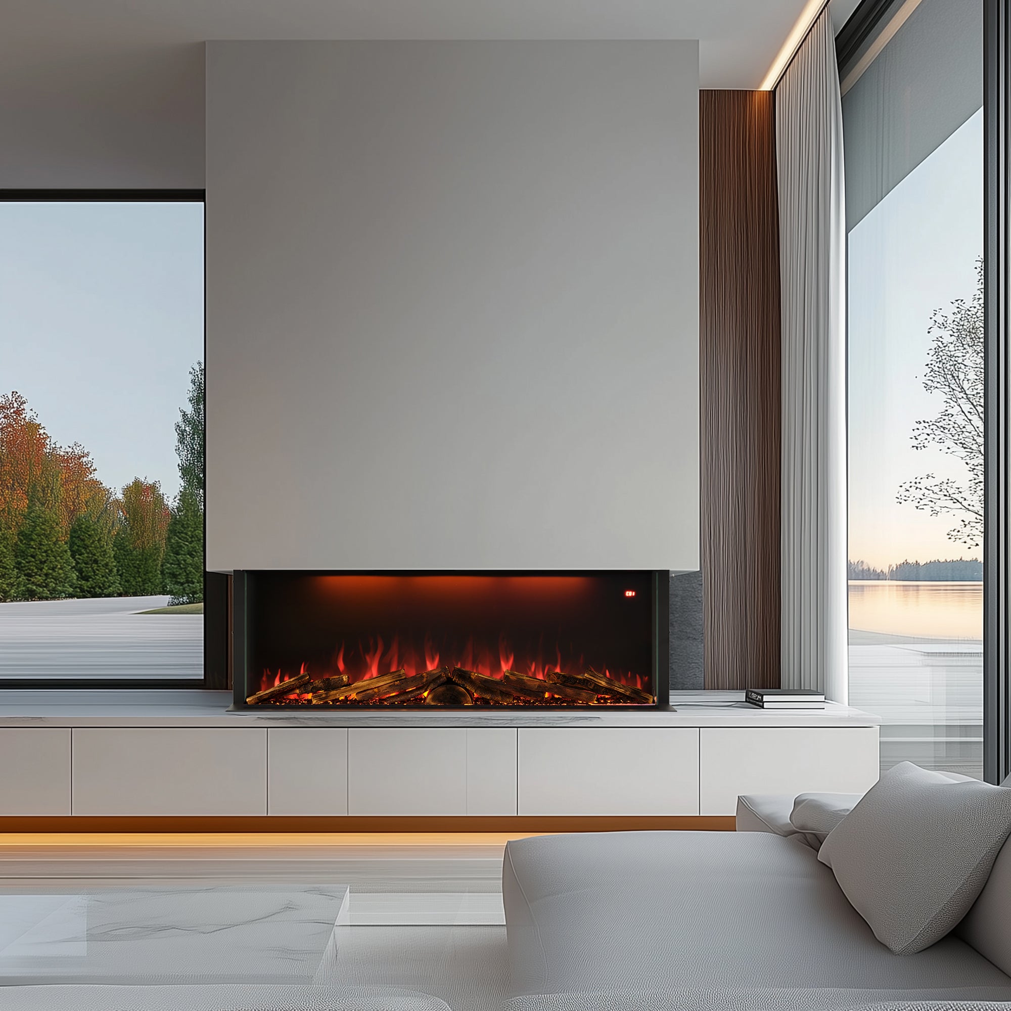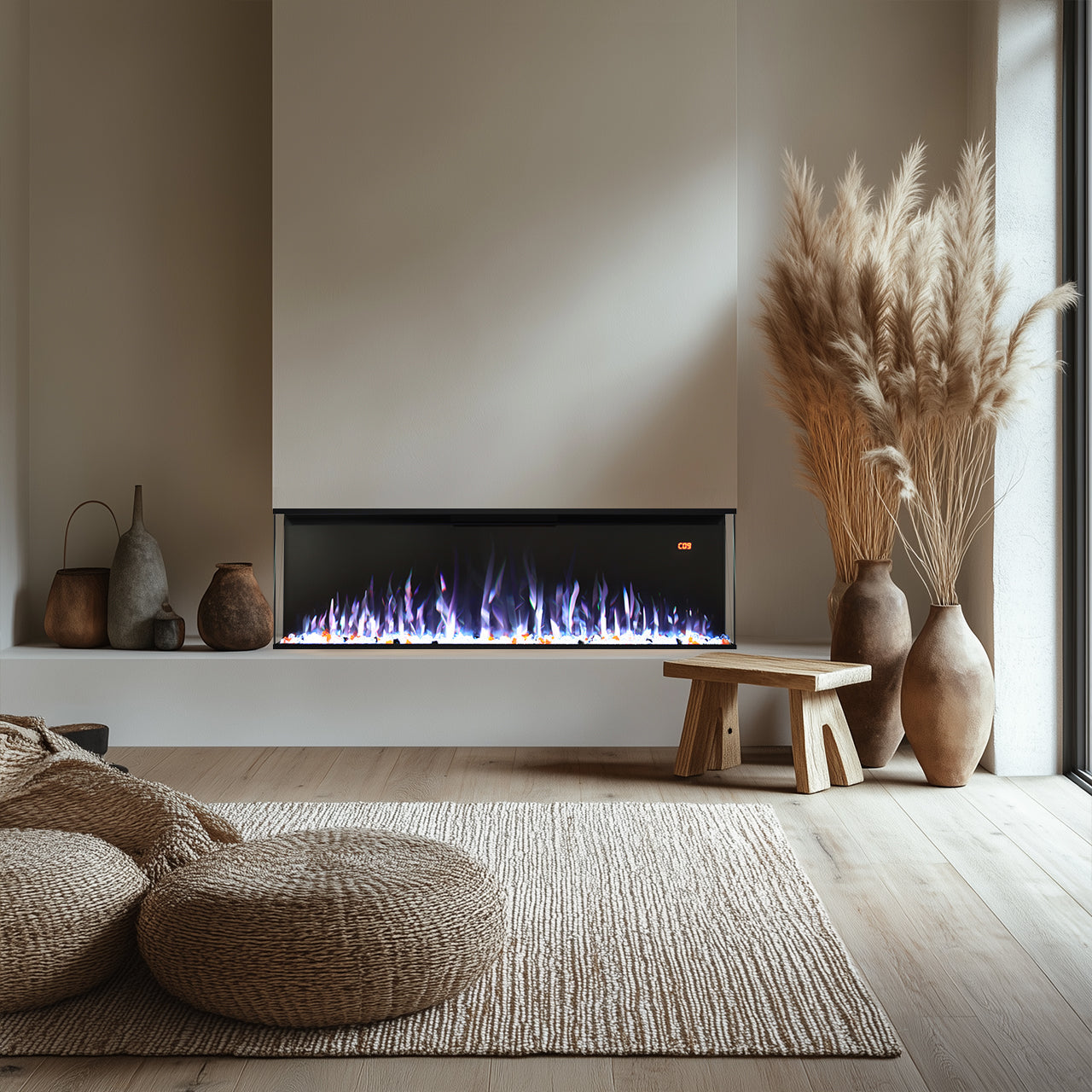 Discover our stunning collection of realistic electric flame effect fireplaces, available in wall-mounted, inset, and freestanding designs. Combining advanced low-energy LED technology with timeless elegance, each fireplace offers remote and manual controls, a sleek glass front, customizable flame colors, adjustable heating settings, and energy-efficient performance—creating the perfect cosy atmosphere all year round.